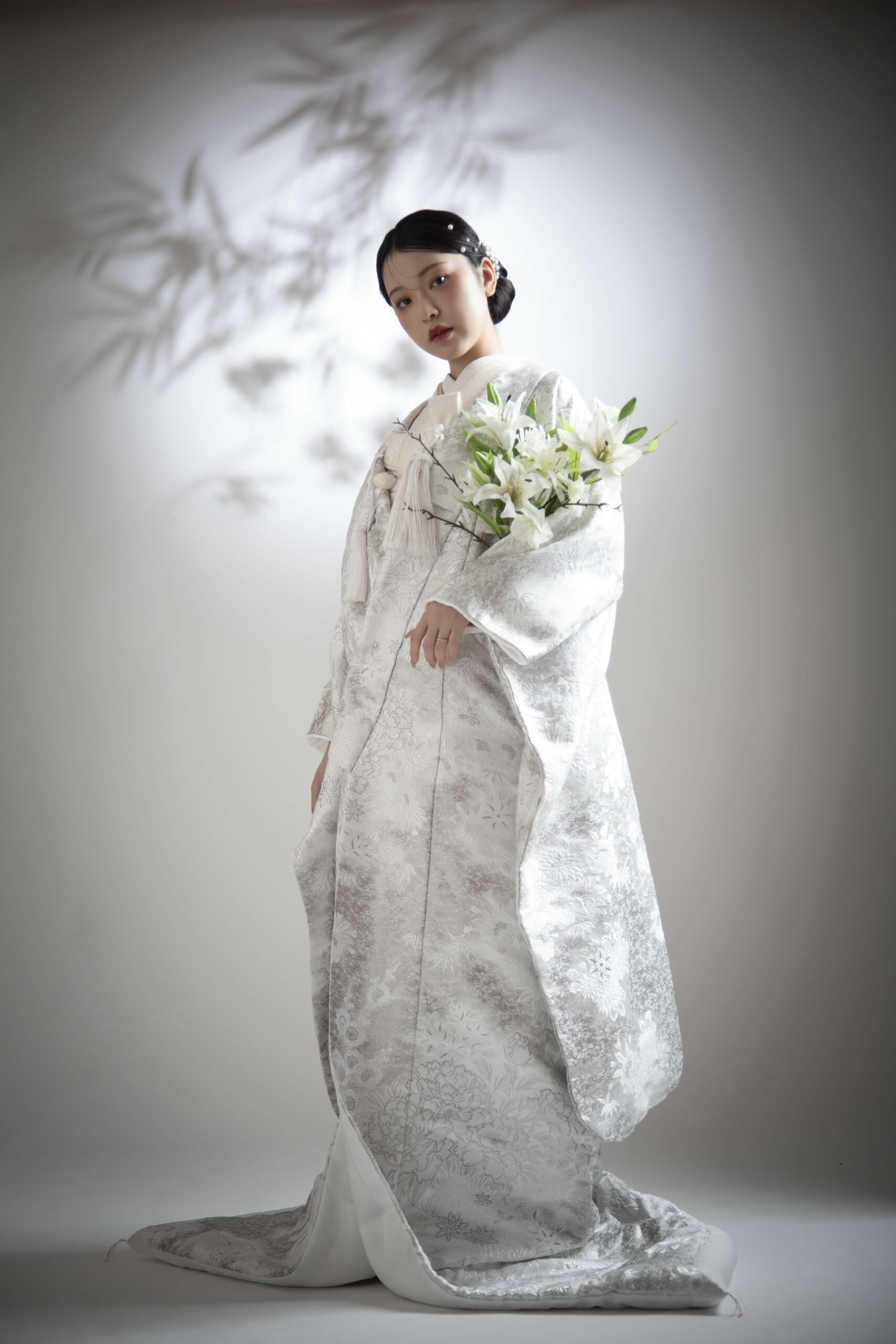 フォトウェディングで人気の衣装は、定番のウェディングドレスやカラードレス、そして和装の白無垢や色打掛です。