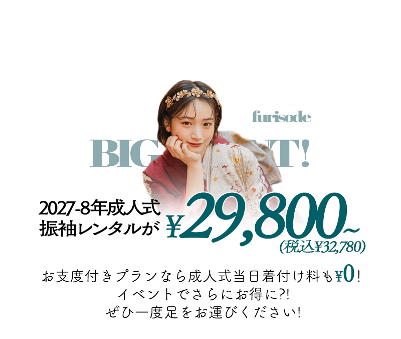 前撮りも成人式当日の振袖レンタルも¥29,800〜