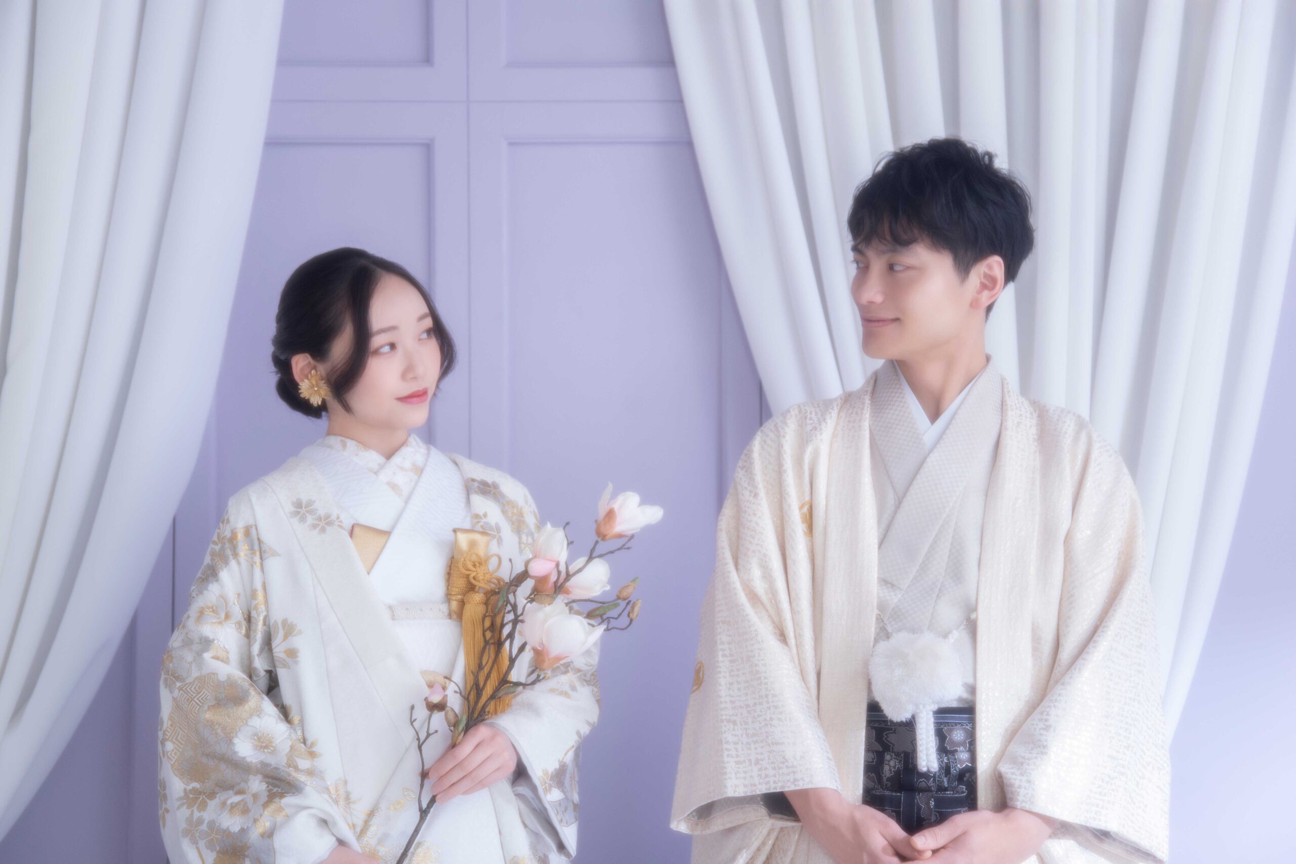 伝統的な着物や白無垢、色打掛に包まれて、京都や東京、大阪といった和の雰囲気あふれるエリアで撮影すれば、自然と華やかで上品な一枚になります。