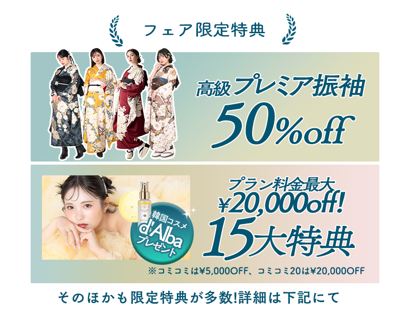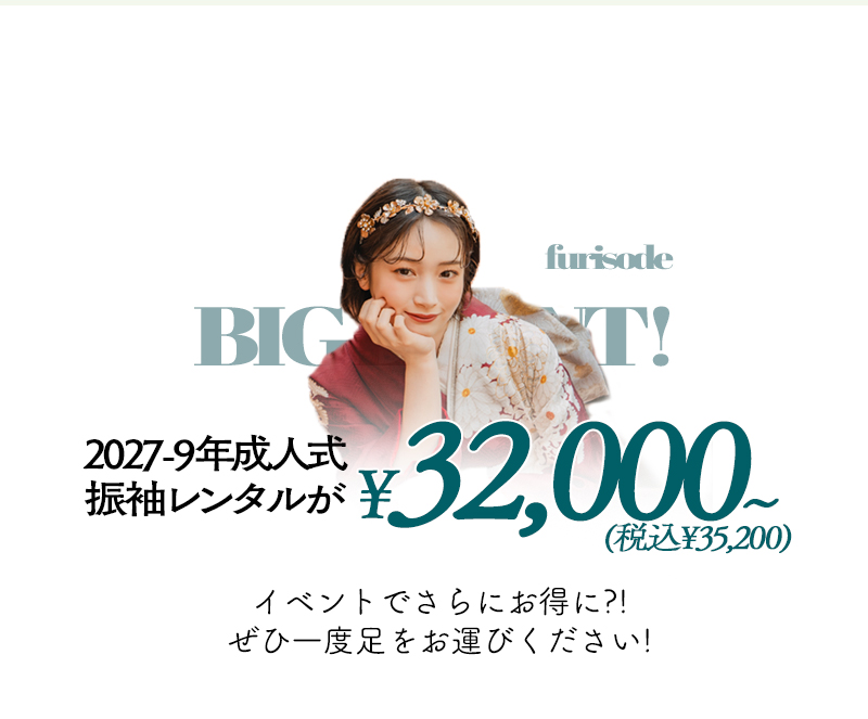 前撮りも成人式当日の振袖レンタルも¥32,000〜