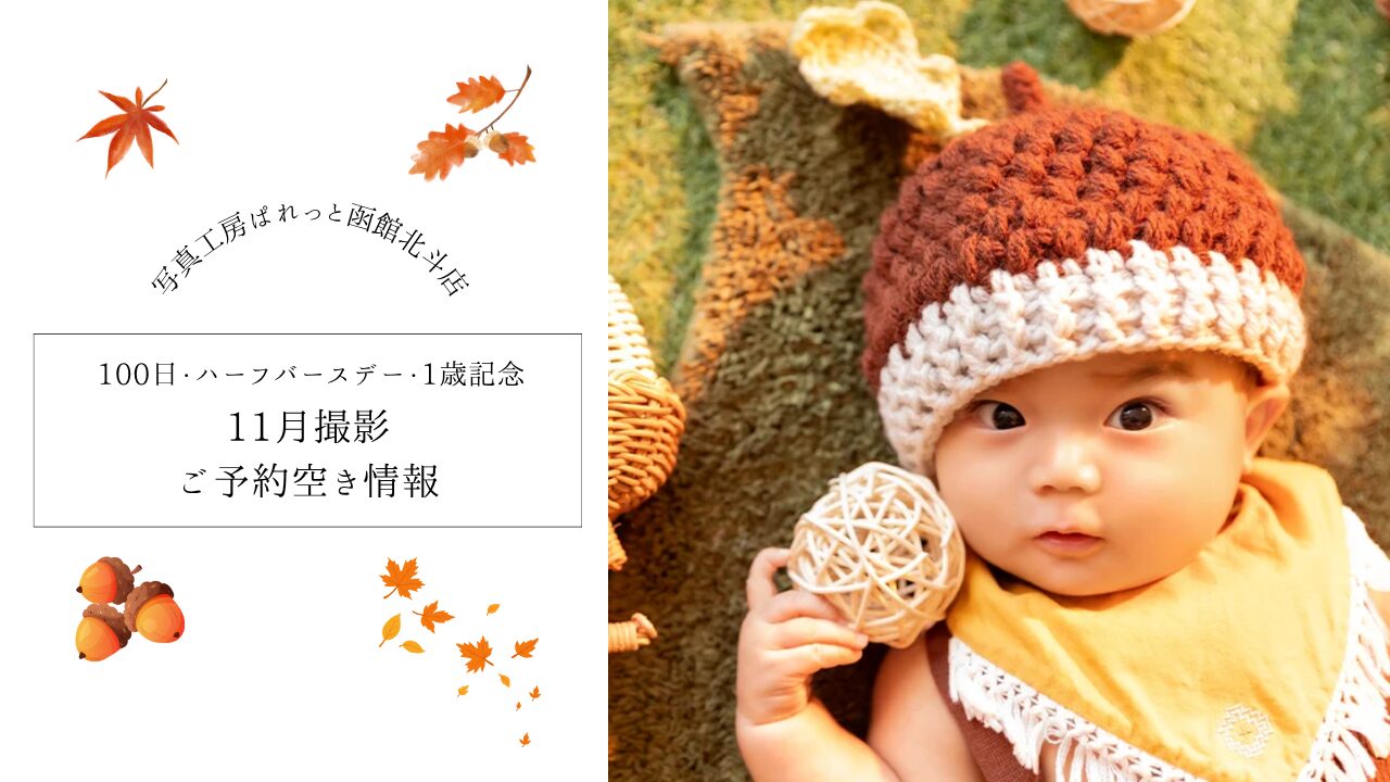 【ベビーフォト】10月満員御礼!11月の撮影ご予約秋情報!さらに10月のお得なキャンペーン情報!【函館北斗店】