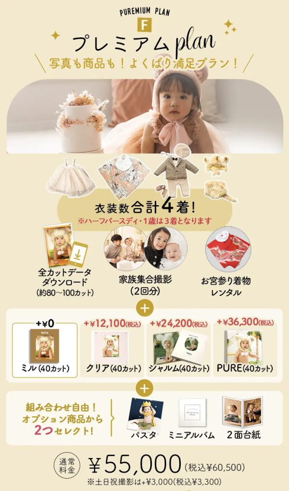 自宅用とお配りする用セットのデータ&アルバムプランと40カット入る写真集がついたプレミアムプランなら