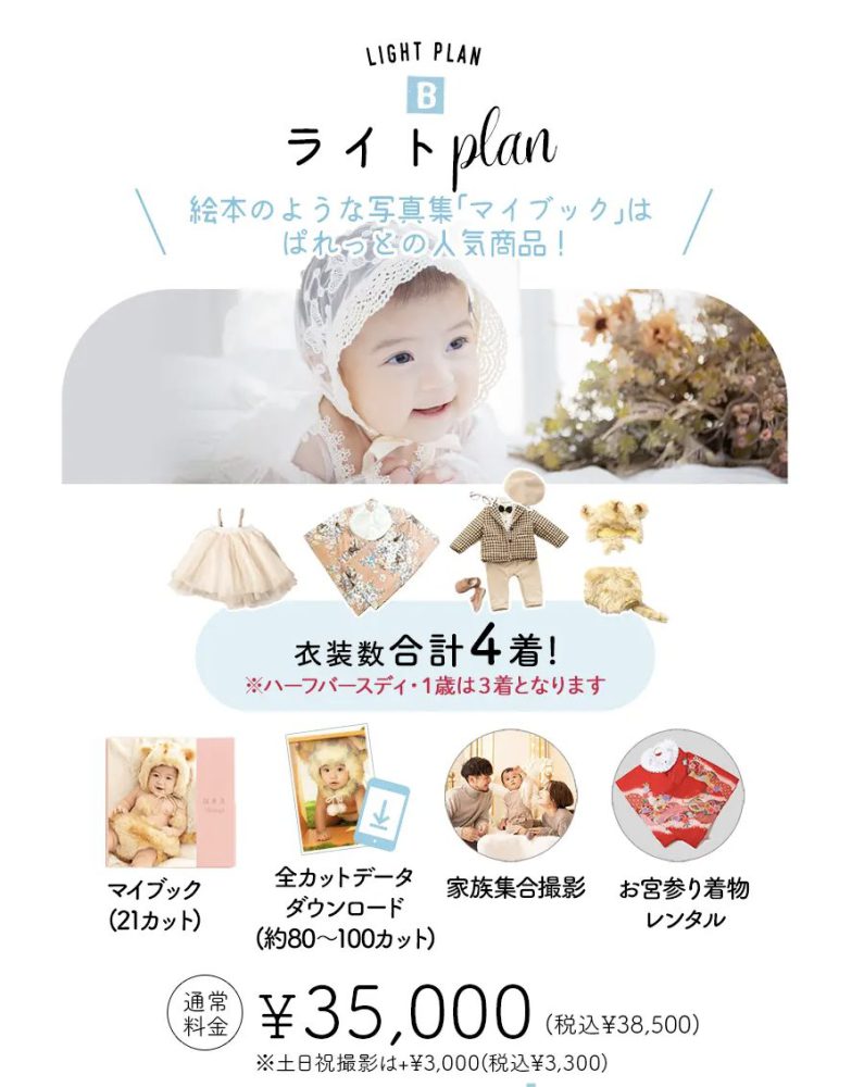 撮影種目:百日記念、ハーフバースディ、1歳お誕生日、七五三、入学、成人撮影、記念撮影