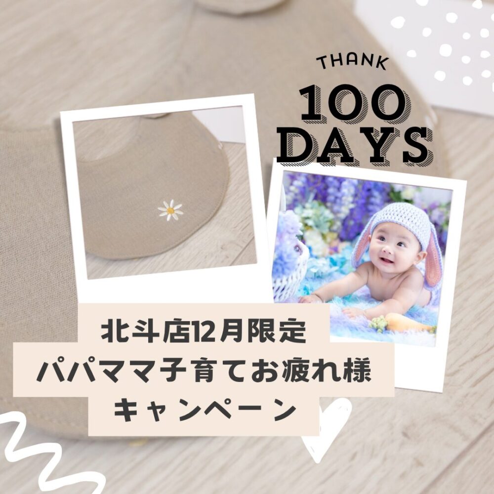 ぱれっと函館北斗店から12月に百日記念撮影をお考えのパパママに向けて『パパママ子育てお疲れ様キャンペーン』を実施いたします!
