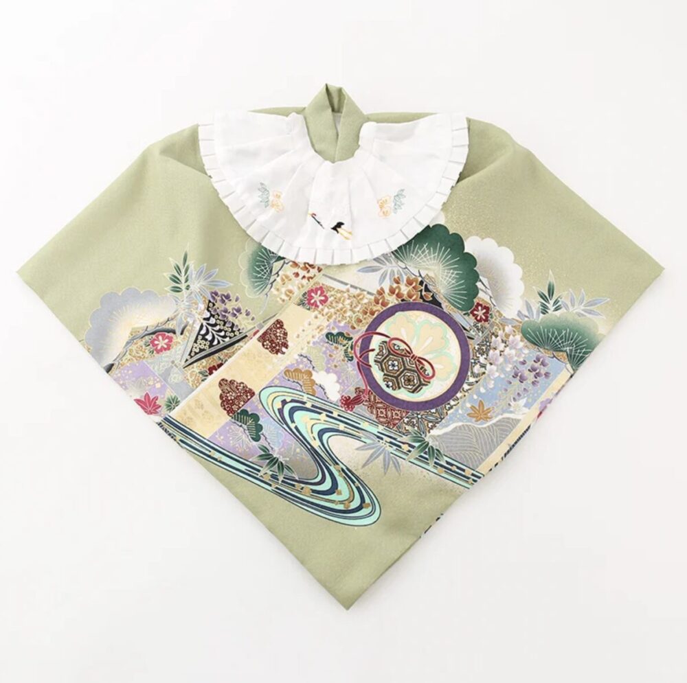 白地に刺繍が施された「大黒帽子&祝い着」が定番。金糸の刺繍と豪華な柄は、お子さまの健やかな成長を願う日本ならではの伝統美を感じさせます。