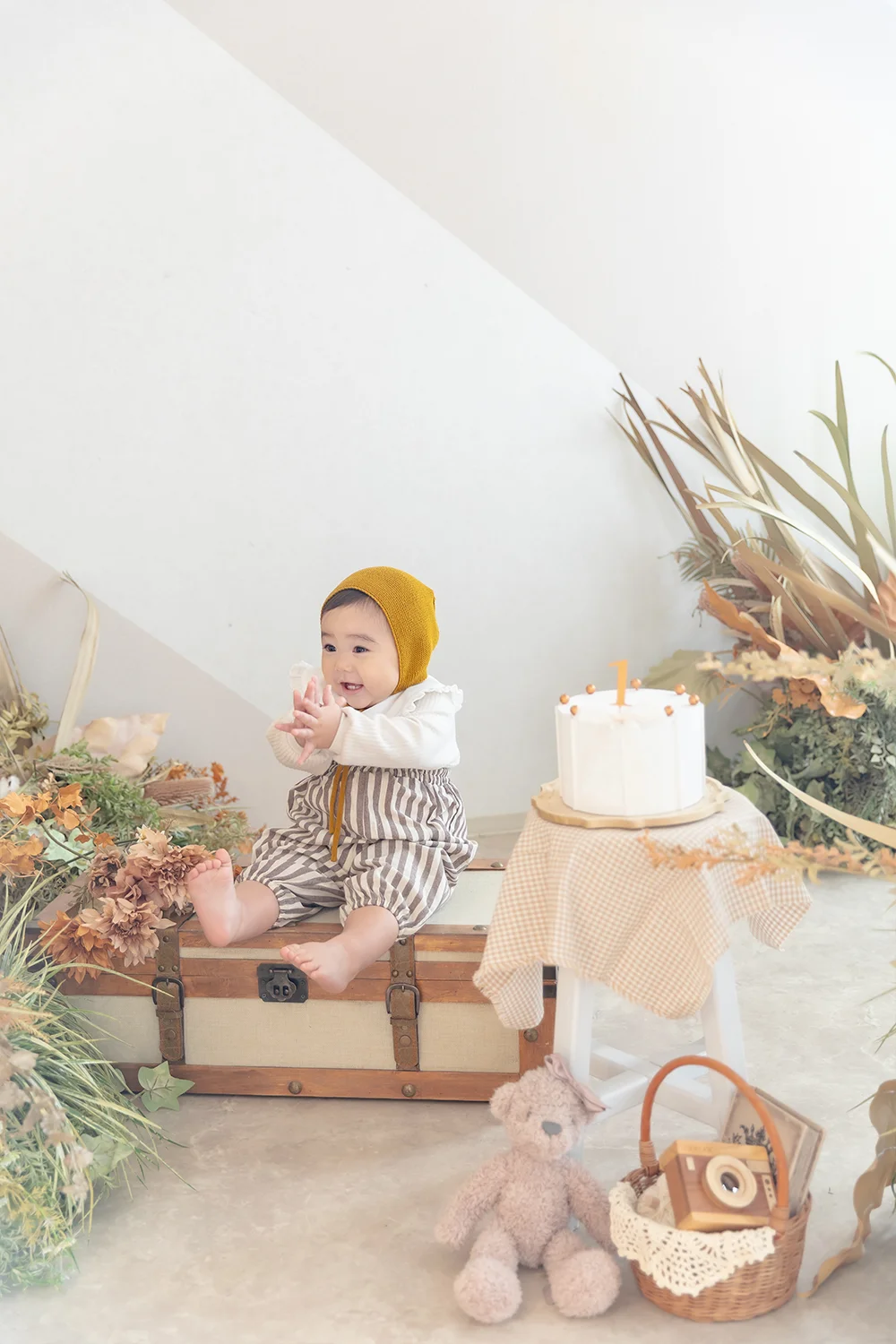 ①.1歳お誕生日記念の衣装数が通常3着のところ+1着追加で合計4着撮影に!