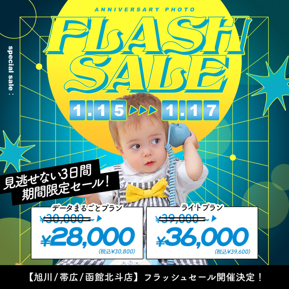 2026/01/13電撃プライス!”フラッシュセール”開催【1/15〜1/17】 / ベビーキッズ全種目記念撮影対象!【旭川店 / 帯広店 / 函館北斗店】