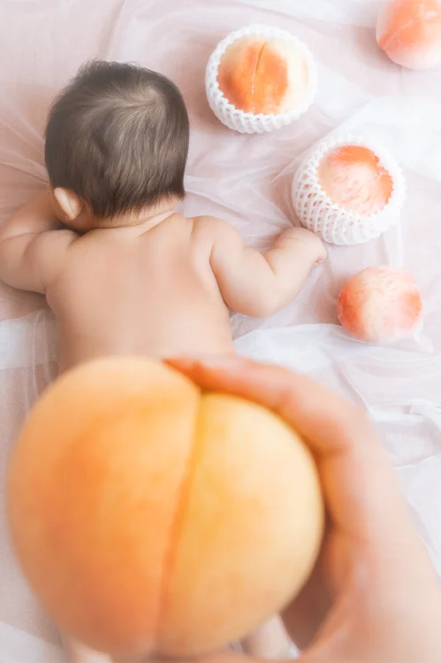 特に百日記念(お食い初め時期)は、まだ自分で動くことが少ないため、仰向けやうつ伏せなど、赤ちゃんらしいポーズをじっくりと収めることができます。