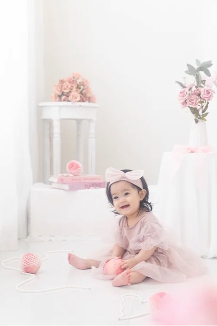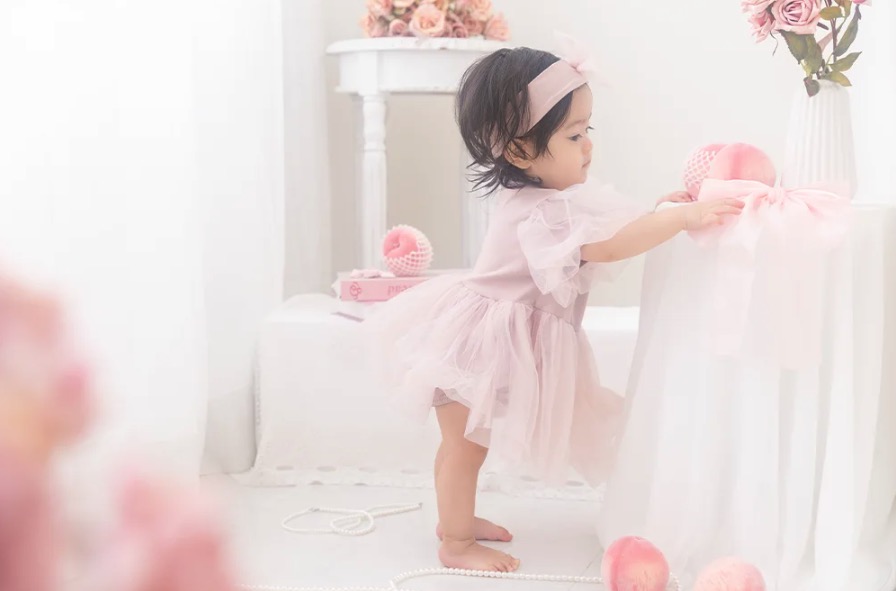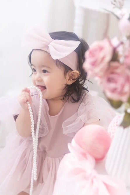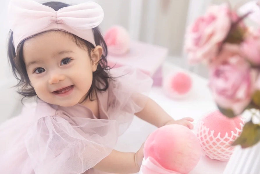 ①.1歳お誕生日記念の衣装数が通常3着のところ+1着追加で合計4着撮影に!