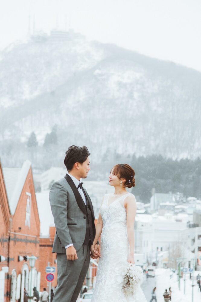 歴史を感じさせるレンガ造りの建物と、函館港の穏やかな景色。ここでは、スタジオでは味わえない開放感と非日常を楽しみながら撮影ができます 。お二人が歩んできた街で、あるいは新婚旅行の思い出の地として、映画のワンシーンのような一枚を残してみませんか?当スタジオのスタッフがアテンド(付き添い)として同行し、撮影をサポートいたしますので安心してくださいね 。