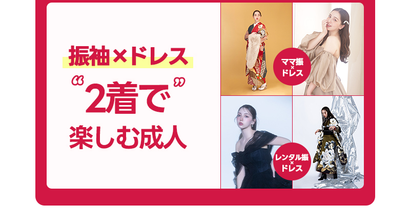 「成人式は振袖もドレスも着たい!」「ママ振袖を持ち込みたい」「費用を抑えながらもクオリティは妥協したくない」――そんなご希望を叶えるキャンペーン内容を、詳しくご紹介します。
