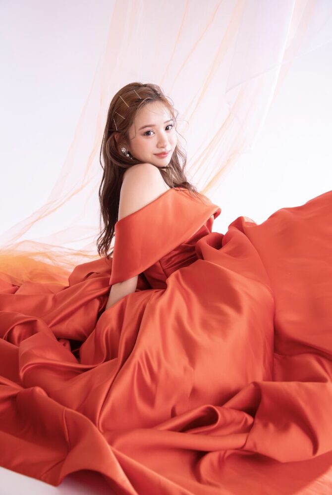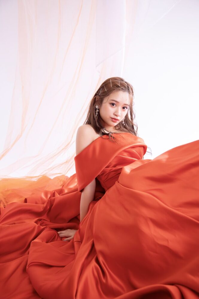2025/09/15成人ドレスモデル撮影新ビジュアル誕生! 「transparent」 鮮やかオレンジで魅せる、大人の透明感とヘルシーな輝き