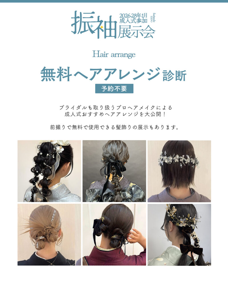 展示会場では、プロのヘアメイクによる無料ヘアアレンジ診断を実施。予約不要で体験可能です。