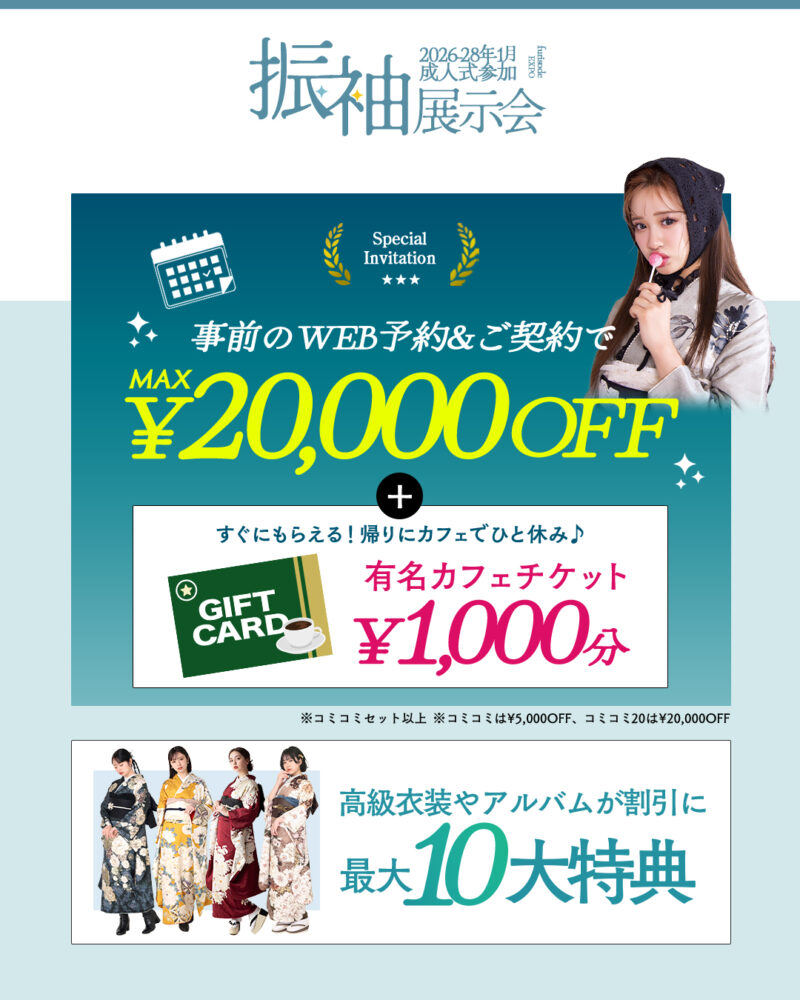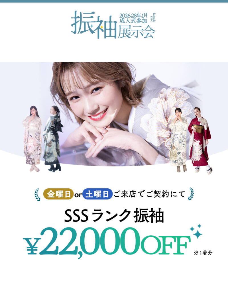 金曜または土曜のご契約で、SSSランク振袖22,000円OFF(1着分)