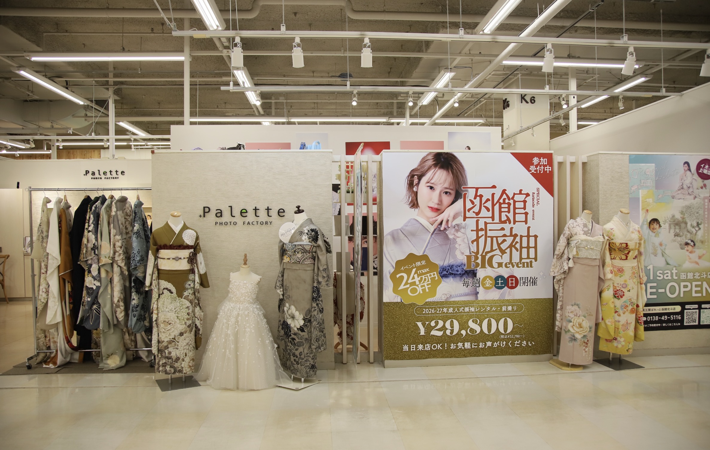 こんにちは! 北海道函館市の隣市北斗市イオン上磯店内にある写真工房ぱれっと函館北斗店です! 当店の系列店ではブライダルや成人記念のご撮影も行っておりますが、事業拡大に伴い一緒に働いてくれる仲間を募集しています!