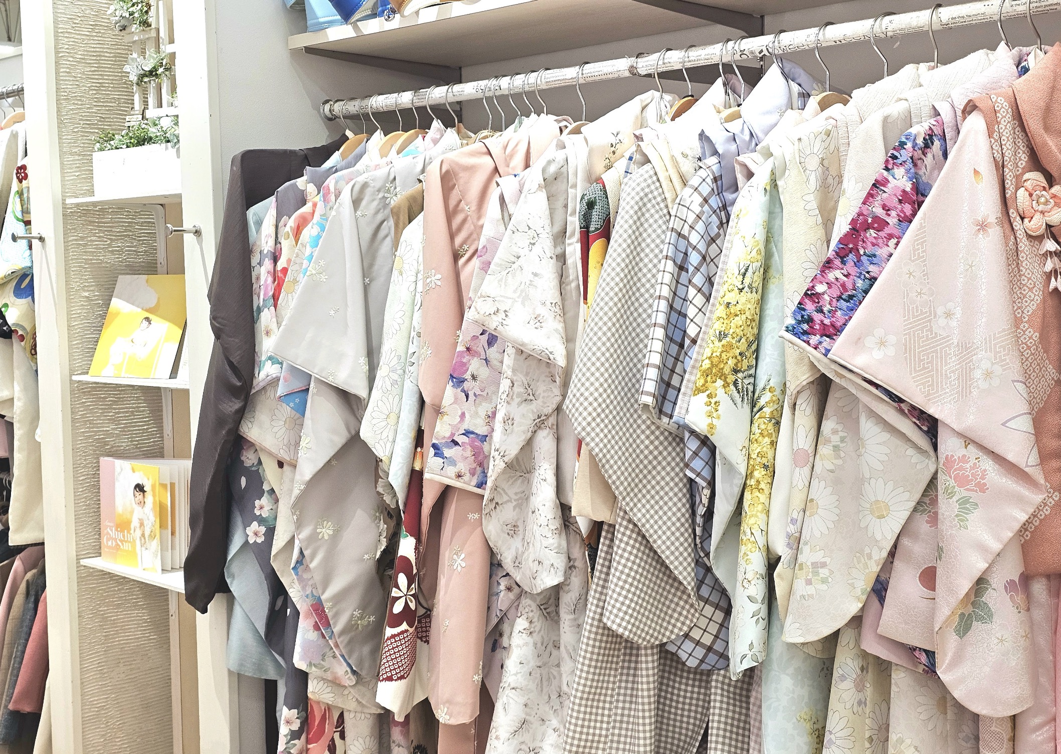 衣装のご案内・試着: ドレスや着物など、最新のトレンドを取り入れた衣装選びをお手伝いします。