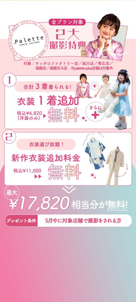 5月、6月中のご入金&撮影して頂いたの方にだけご提供の特別なキャンペーン!