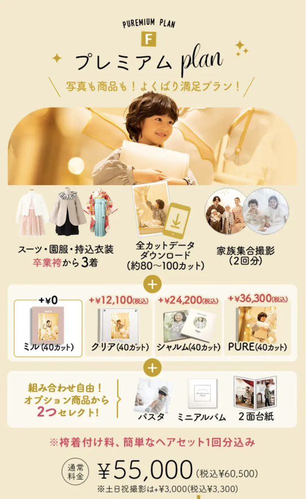 自宅用とお配りする用セットのデータ&アルバムプランと40カット入る写真集がついたプレミアムプランなら
