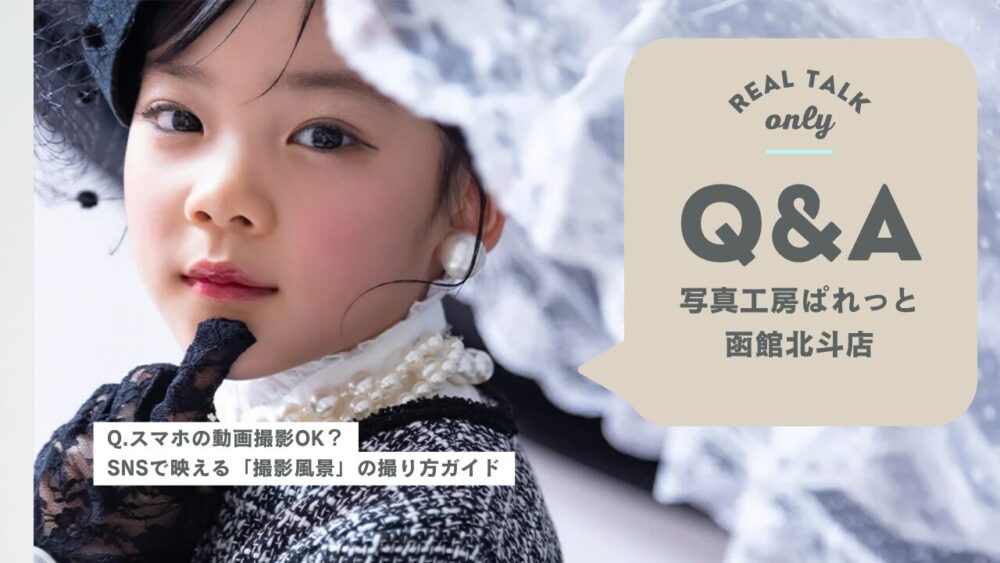 こんにちは、写真工房ぱれっと函館北斗店です! 「せっかくの記念撮影、プロに撮ってもらうのはもちろんだけど、自分のスマホでも残したい…!」 「最近流行りのリール動画、撮影中の裏側を載せたいけど撮ってもいいのかな?」 そんな疑問をお持ちのパパ・ママ、そして成人さん!安心してください。 写真工房ぱれっと 函館北斗店では、お客様ご自身のスマートフォンによる動画撮影が、全コースでOKなんです!✨ 函館市や北斗市、七飯町など道南エリアで「自然な表情を残したい」というお客様のために、 プロの視点から「映える」撮り方のコツを伝授しちゃいます!