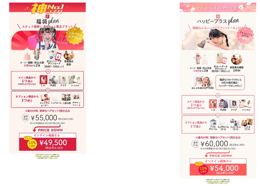 特に、アルバムや豪華な特典がついた「福袋プラン」をご検討の方には、この割引が最も大きく適用されます。