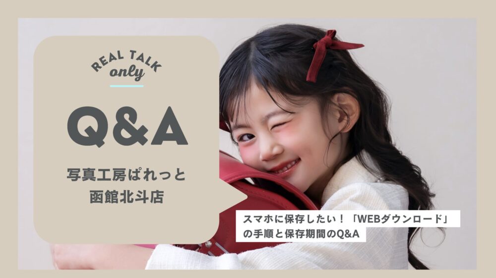 こんにちは!写真工房ぱれっと 函館北斗店です。 せっかく撮ったお気に入りの写真、いつでも見られるようにスマホに保存しておきたいですよね。 最近では「形に残るアルバムもいいけれど、SNSにアップしたり、待ち受けにしたい!」というお声から、WEBダウンロードデータが大人気です。 今回は、スマホへの保存手順と、よくあるご質問をまとめました。