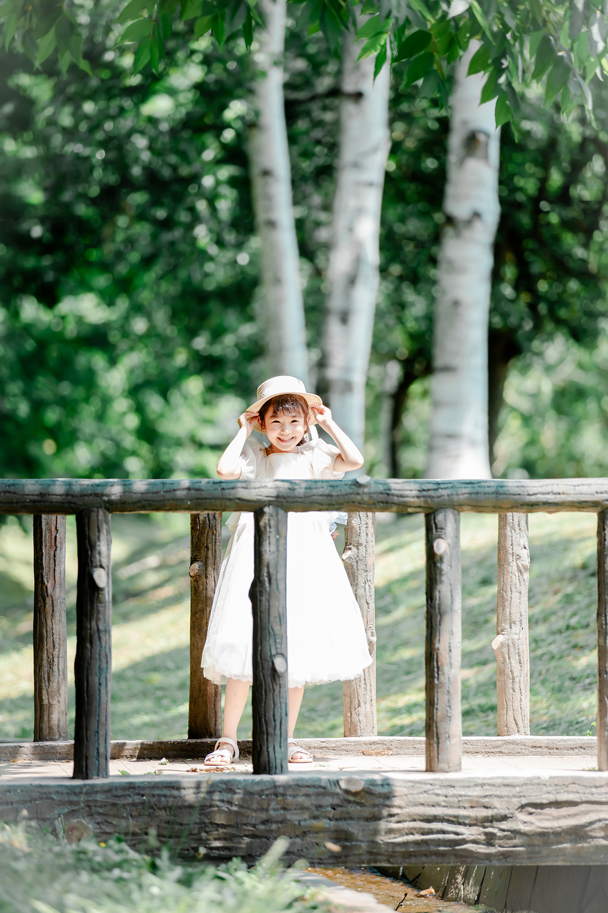 まるで絵本から飛び出してきたような、小さなドレス姿の主人公。 西野緑道は、そんなお子様のキラキラした瞬間を自然体で残せる、特別な場所です。四季折々の花が咲き、柔らかな木漏れ日が差し込むこの緑道は、お子様にとっても最高の遊び場。カメラの存在を忘れて夢中で遊ぶ中で、これまで見たことのないような、心からの笑顔や無邪気な表情が、自然と溢れ出します。