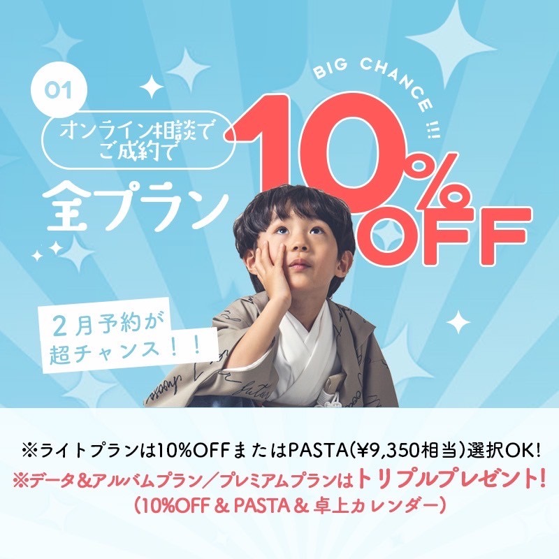 【写真工房ぱれっと函館北斗店】緊急キャンペーン告知!全プラン10%オフ!?土日料金無料!?1月と2月撮影お見逃しなく!!