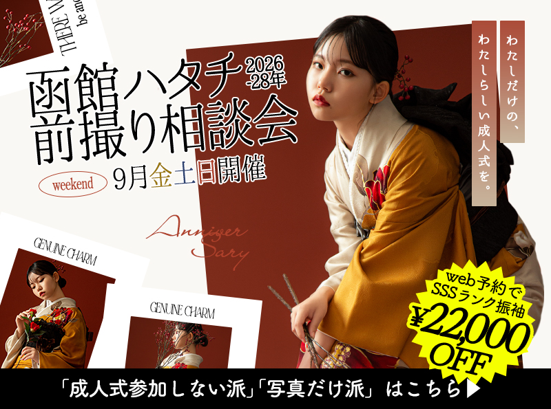 【2026〜2028年成人式対象】残り開催日3日!9月毎週金、土、日開催!函館成人式前撮り相談会!