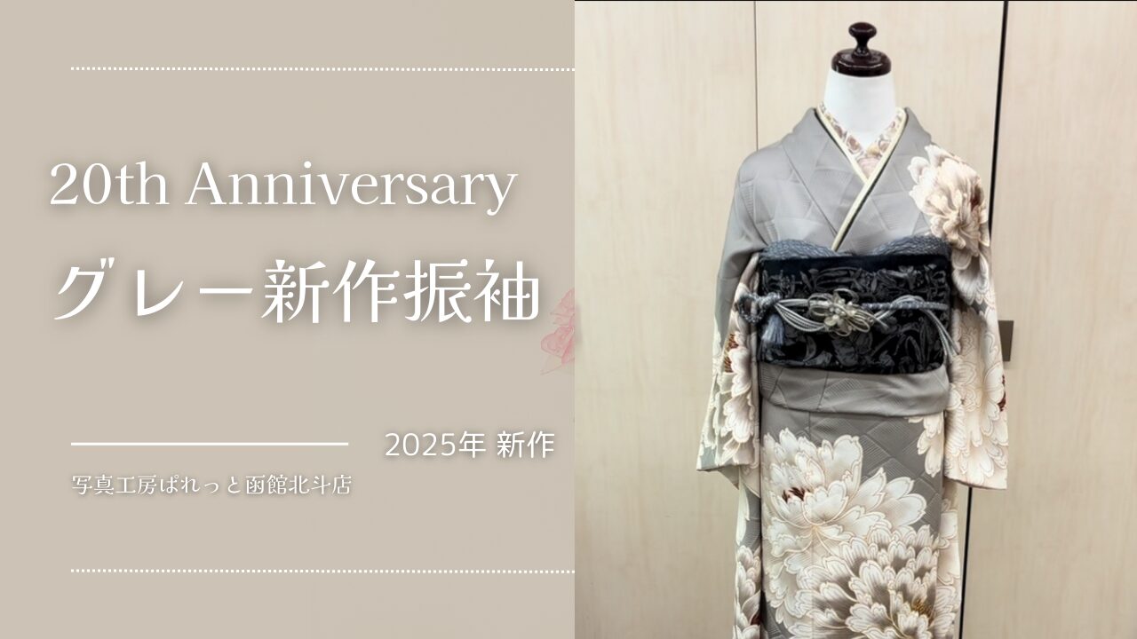 【2025年新作振袖】グレー×大輪の菊柄が映える大人シックコーデ|写真工房ぱれっと函館北斗店