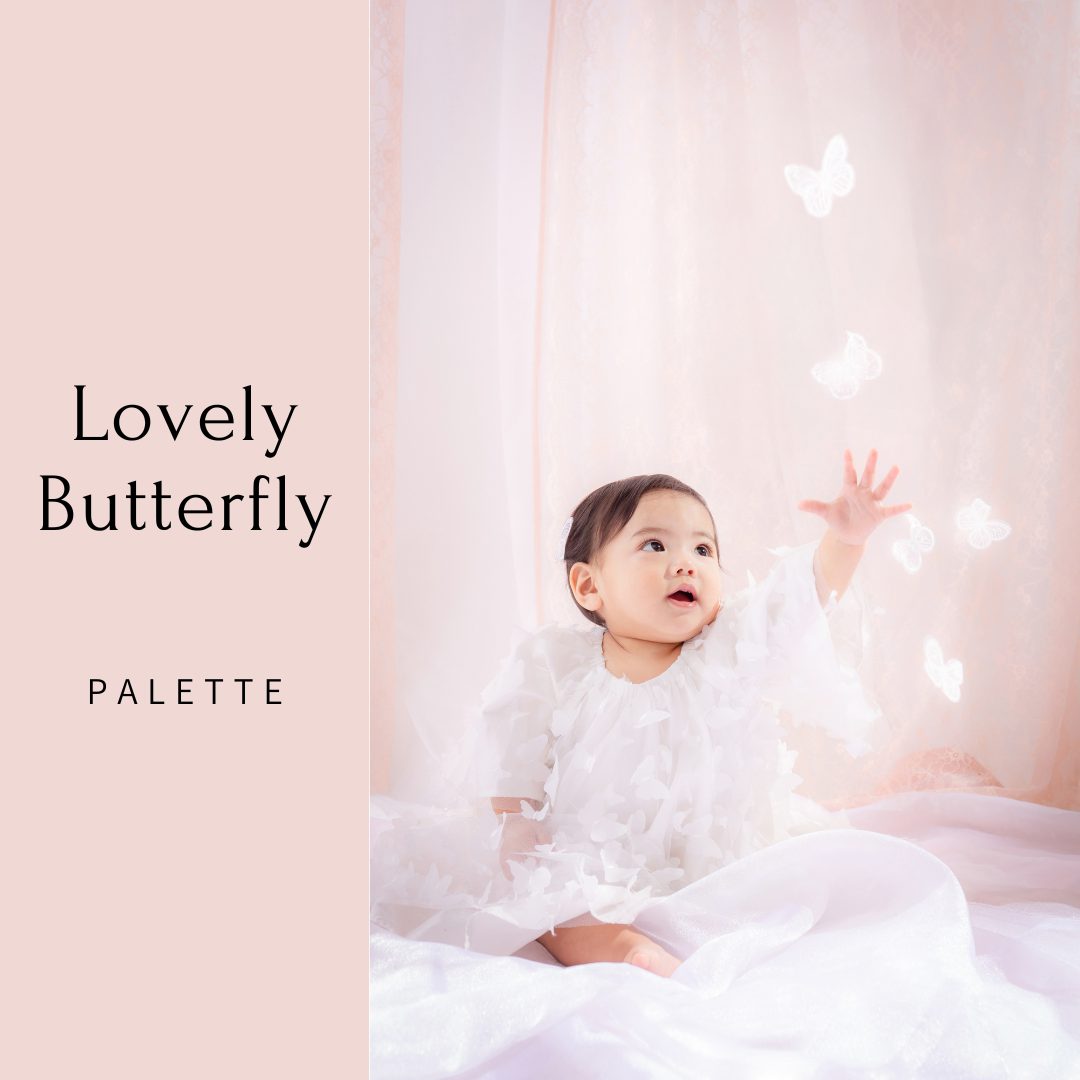 こんにちは! 北海道函館市の隣市、北斗市イオン上磯店内にある写真工房ぱれっと函館北斗店です 今回は蝶々ワンピースのBABY新ビジュアル公開 ♡ Lovely Butterfly ♡ 蝶々と遊んでいる小さな女の子という設定☆ 一歳の女の子撮影にはおすすめです♪♪