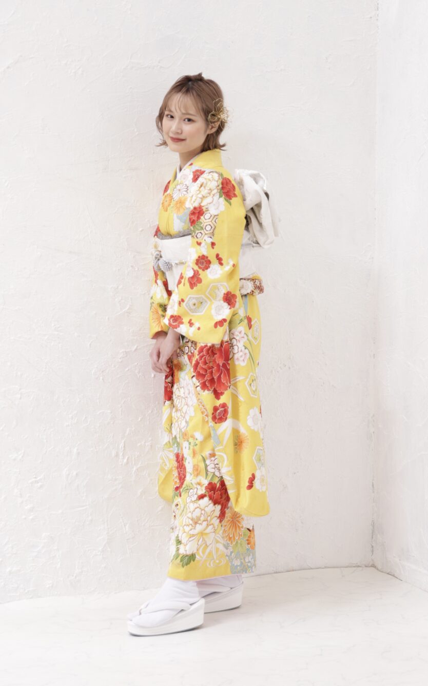 古典イエローで元気いっぱいな振袖