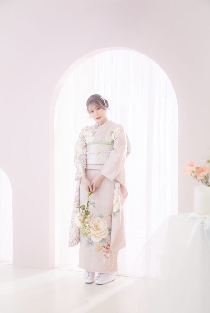 成人式会場や前撮りスタジオで並んだとき、圧倒的に目を引く存在感。写真映えはもちろん、同世代の中でも「特別な一着」として記憶に残ります。