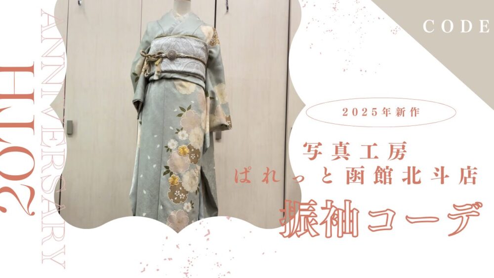 北海道函館市の隣市、北斗市イオン上磯店内にある写真工房ぱれっと函館北斗店では2026年成人式ご予約受付中! 成人式や前撮りで「特別感のある振袖を選びたい」という方におすすめのコーディネートをご紹介します。 今回ご紹介するのは、淡いミントグリーンが目を引く可憐な振袖コーデ。 透明感のあるパステルカラーの地色に、華やかな花模様があしらわれ、 上品でありながら今っぽさも叶える、特別な一着です。