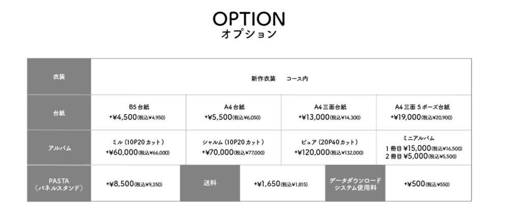 ピュアアルバム(20P40カット):120,000円(税込132,000円)