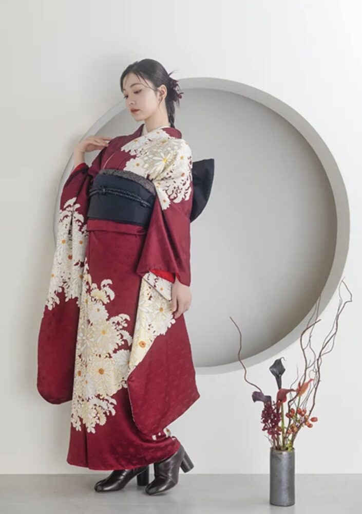 トレンド振袖:くすみカラー、ヴィンテージ調など個性派スタイル
