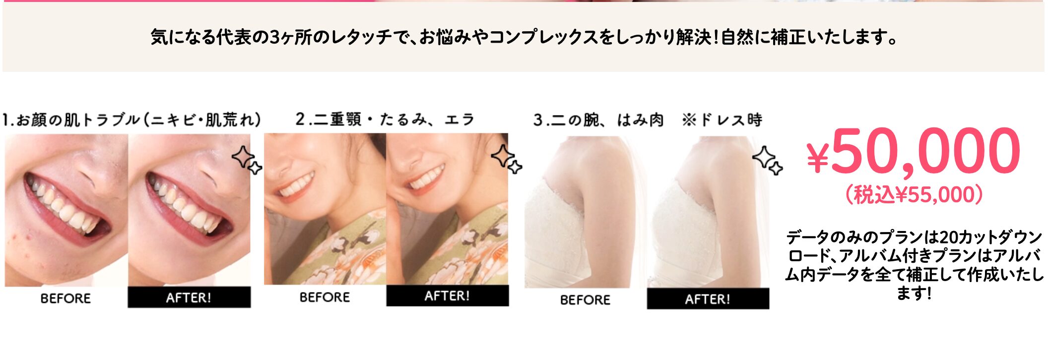 レタッチデータ(通常¥22,000)も入っているのでかなりお得に撮影ができます!