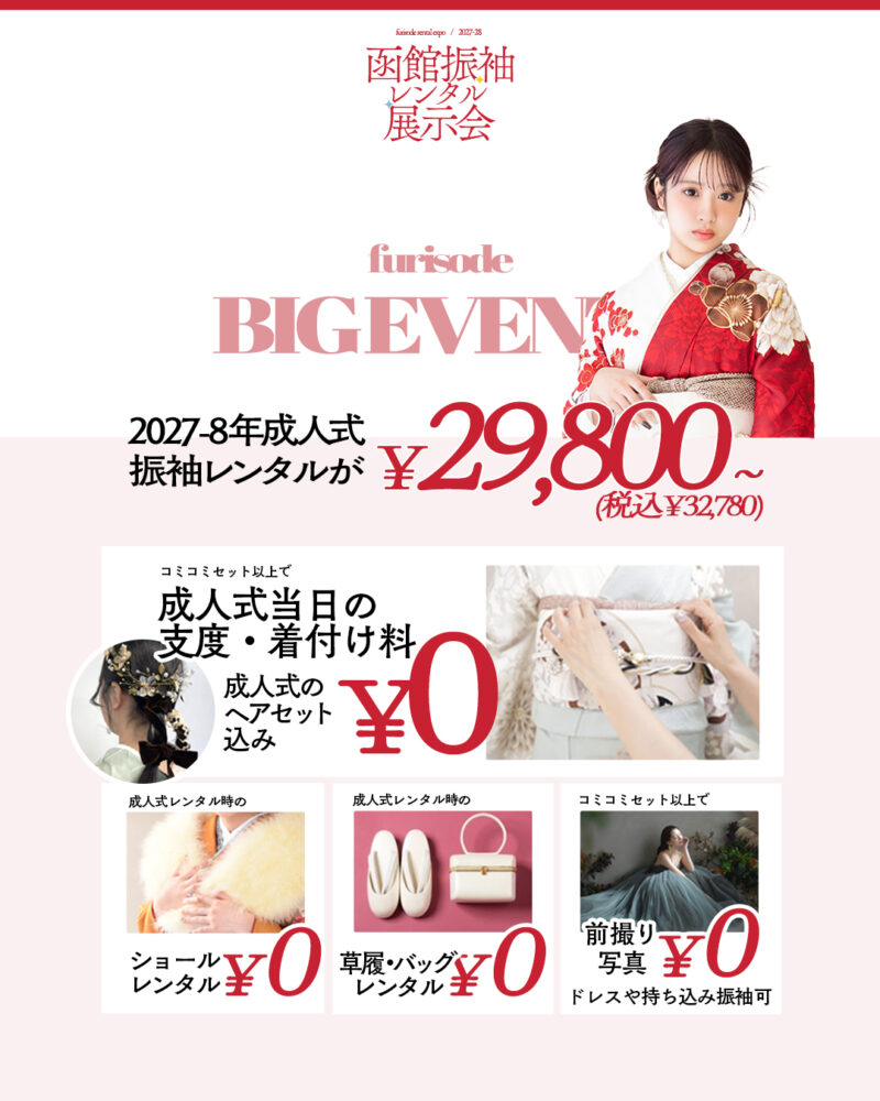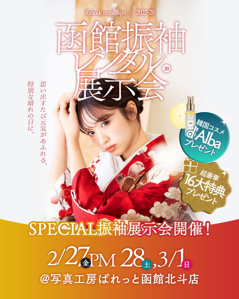 2026/02/05【2026年2月27日2月28日3月1開催】函館振袖レンタル展示会|写真工房ぱれっと函館北斗店