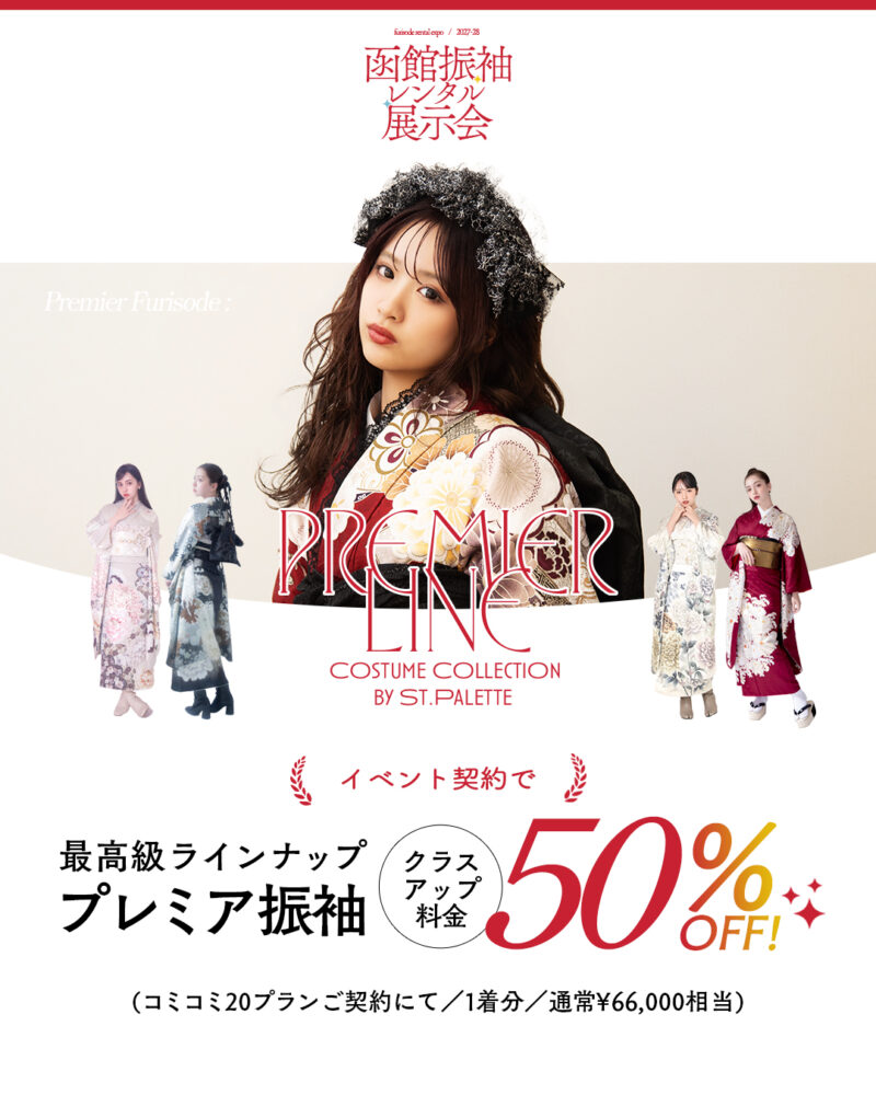 コミコミ20プランご契約で、プレミアライン振袖50%OFF(1着分)