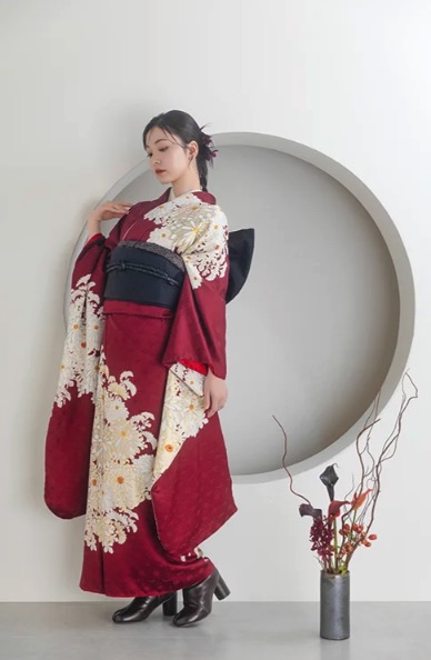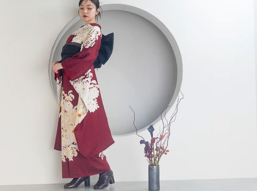 トレンド振袖:くすみカラー、ヴィンテージ調など個性派スタイル
