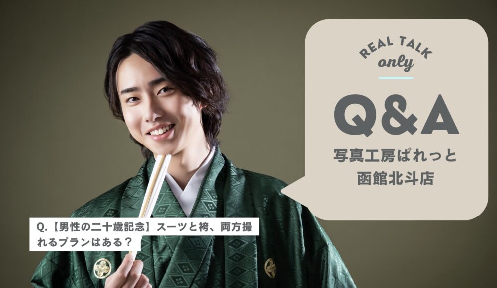 「二十歳の記念、男だけど写真は撮るべき?」 「せっかくだから袴も着てみたいけど、自前のスーツ姿も残したい……両方撮れるプランってあるの?」