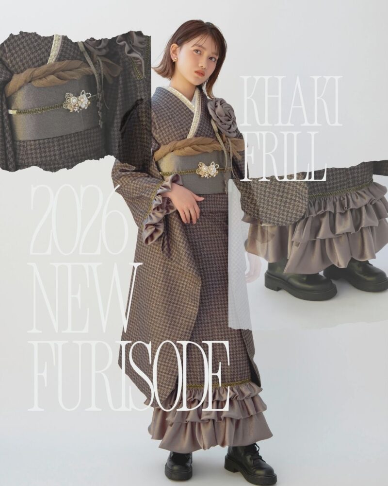 いよいよ2026年に成人式を迎える皆さまへ。 「周りと被りたくない」「自分らしいスタイルを楽しみたい」そんな願いを叶える、これまでの振袖の常識を覆すハイセンスな新作アイテムが届きました。 今回のキーワードは 「KHAKI(カーキ)」×「FRILL(フリル)」。 和の伝統に洋のモードをMIXした、今もっとも旬なコーディネートをご紹介します。
