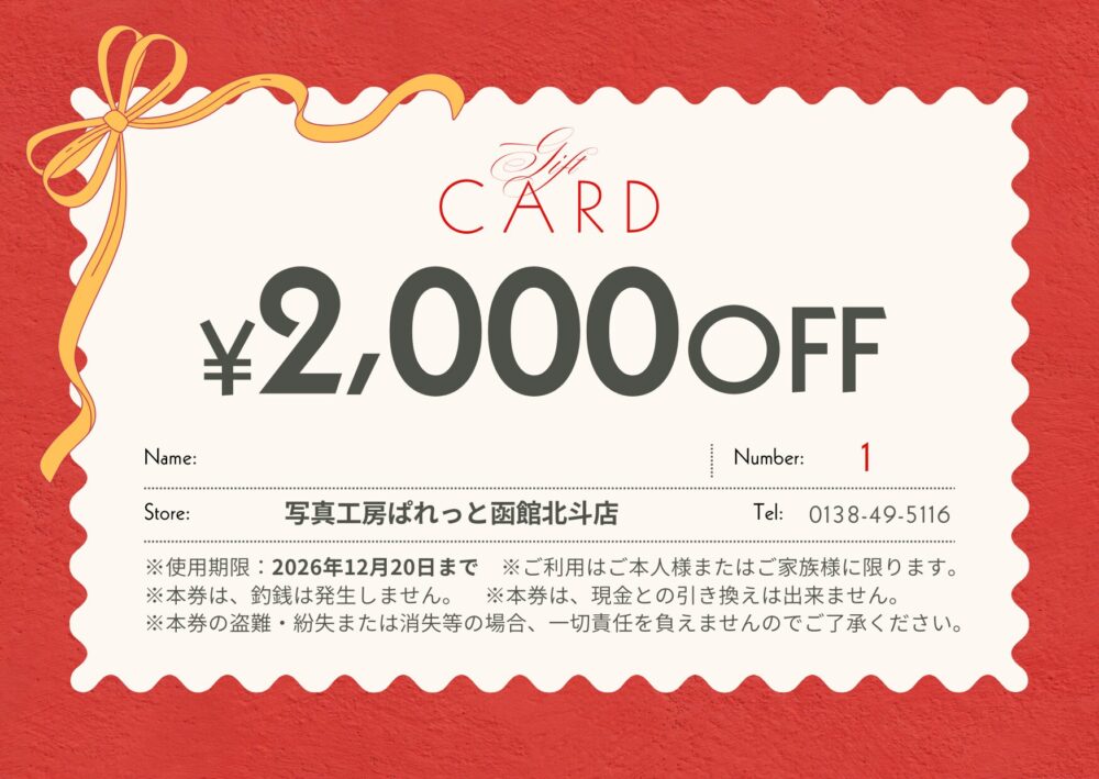 こんにちは!北海道北斗市のイオン上磯店内にある**「写真工房ぱれっと 函館北斗店」**です! 七五三、秋に撮りそびれてしまった…と焦っていませんか?ご安心ください!写真工房ぱれっとでは、「冬の七五三」を応援する12月限定の特別な特典をご用意しました。「冬小物無料レンタル」や、年賀状にも嬉しい「家族カット増量」、さらにお得な「年末福袋キャンペーン」まで。一年の...