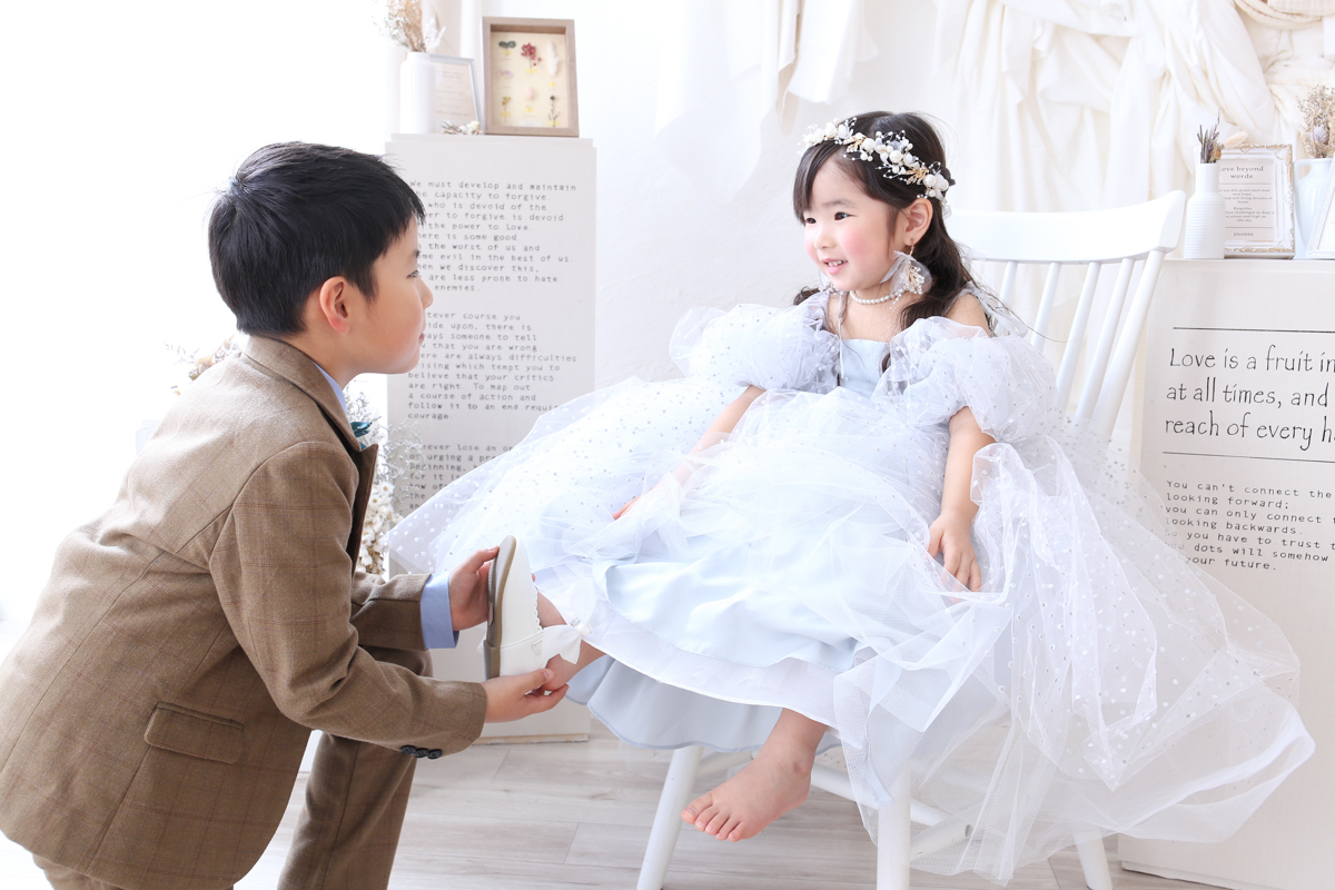 こんにちは!北海道函館市の隣市、北斗市イオン上磯店内にある写真工房ぱれっと函館北斗店です! 写真工房ぱれっと函館北斗店では七五三の撮影を一年中やっております! 今回ご紹介するお客様は、七五三の撮影されたお客さまです! 3歳女の子、新作ドレス編! お兄ちゃんもレンタルタキシードで一緒に可愛いツーショットを撮りました。 これから撮影を考えている方は、是非ご参考にして下さい☆