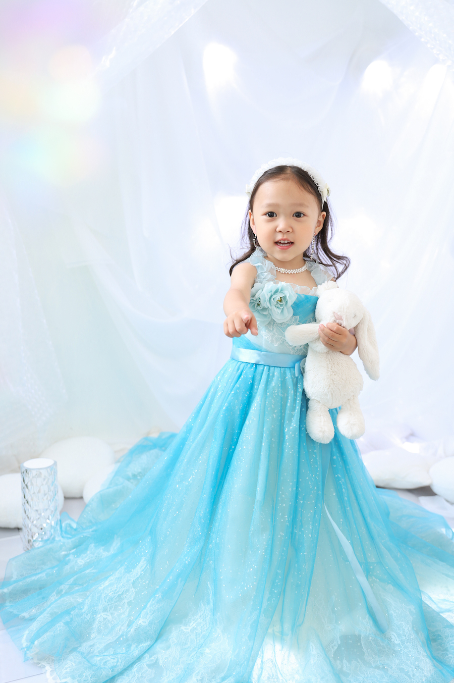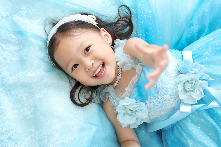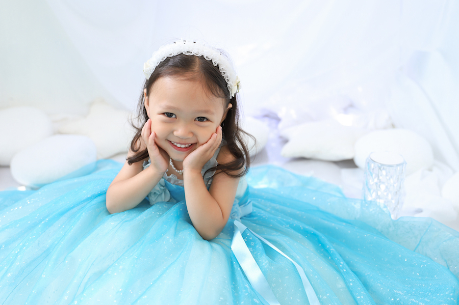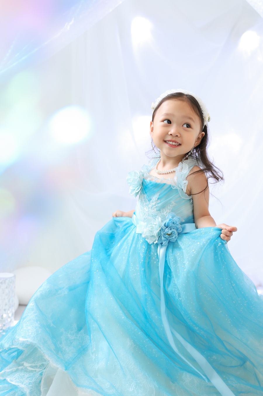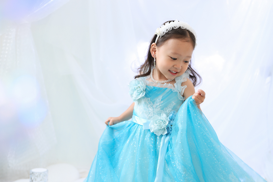 一着目は子供に人気な水色ドレス!