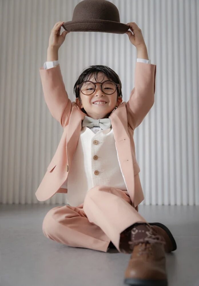和装で凛々しい姿を撮ったら、次はガラリと雰囲気を変えて、おしゃれで遊び心のある洋装での撮影はいかがでしょうか。ぱれっとでは、普段使いできるようなカジュアルなスーツや、大人顔負けのタキシードなど、七五三の記念にふさわしい洋装も充実しています。