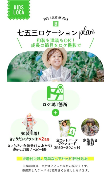 各年の成長を記録する七五三撮影は¥30,000(税込¥33,000)からご案内!