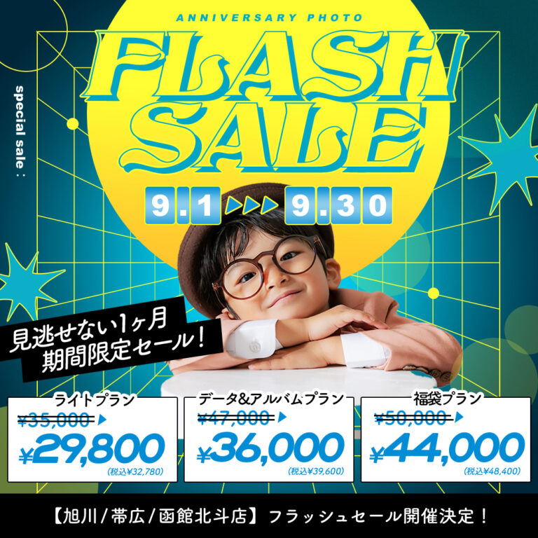 【帯広店&旭川店&北斗店合同開催】電撃プライス!”フラッシュセール”開催【9/1〜9/30】 / ベビーキッズ全種目記念撮影対象!