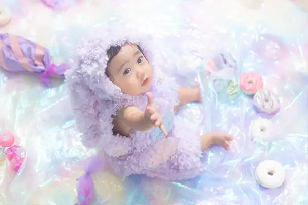 魔法で森と海がキラキラに!パステルカラーの海の先にはキラキラ輝く不思議なお花が満開!宝石でいっぱいの桟橋で一休み。キラキラ魔法の世界へ誘います。