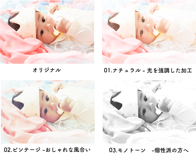 オリジナル商品は、写真をより雰囲気よく仕上げるための色味加工