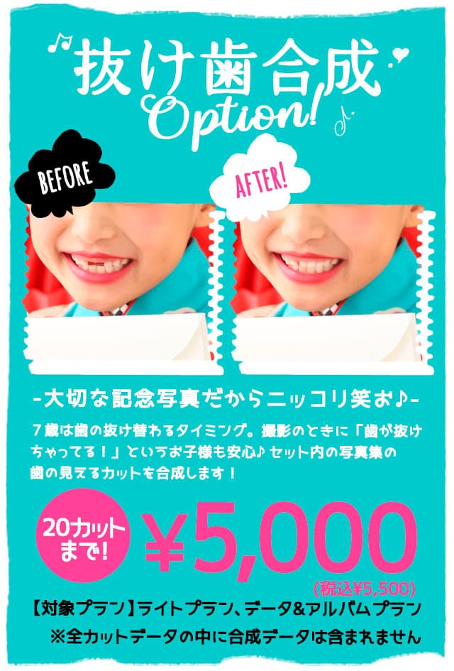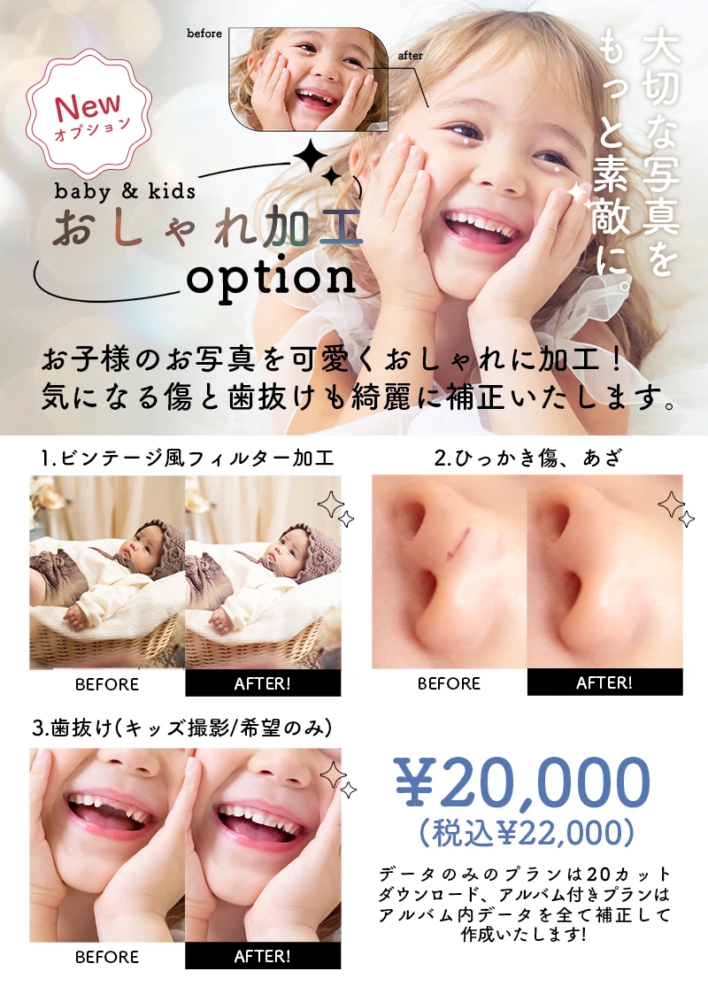 | 家族撮影追加 | ¥5,500(税込¥6,050) | |